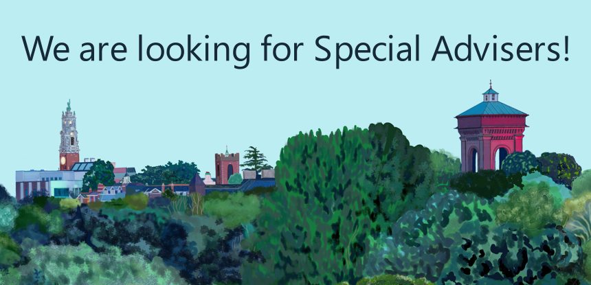 Application process: These are voluntary (unpaid) posts. There is no formal application document, but you can find further information here. We would like you to email us, explaining a little about your background, your interests and your skills, what you would hope to achieve as a special adviser and any questions you would like to discuss if we ask you to come for an interview.